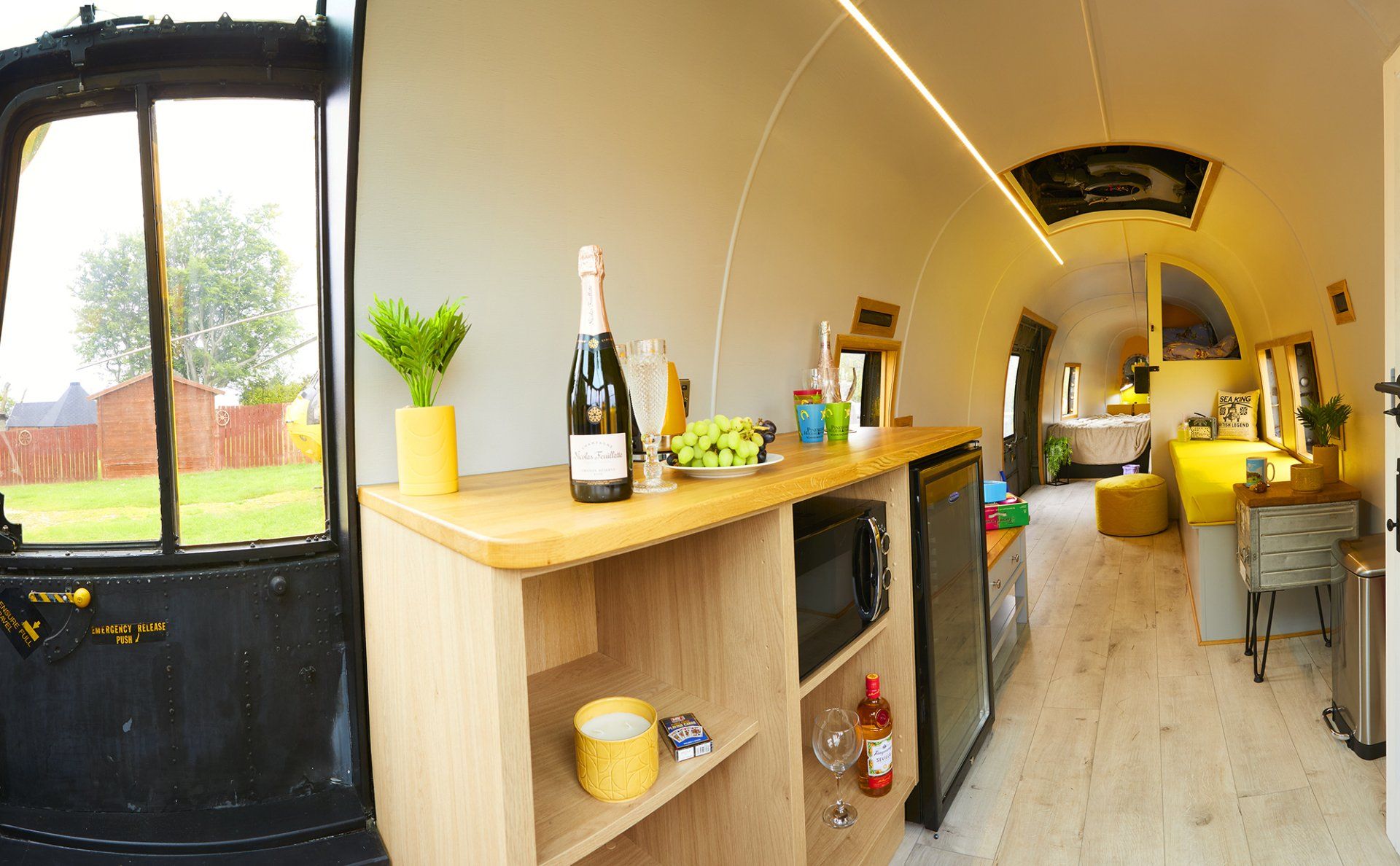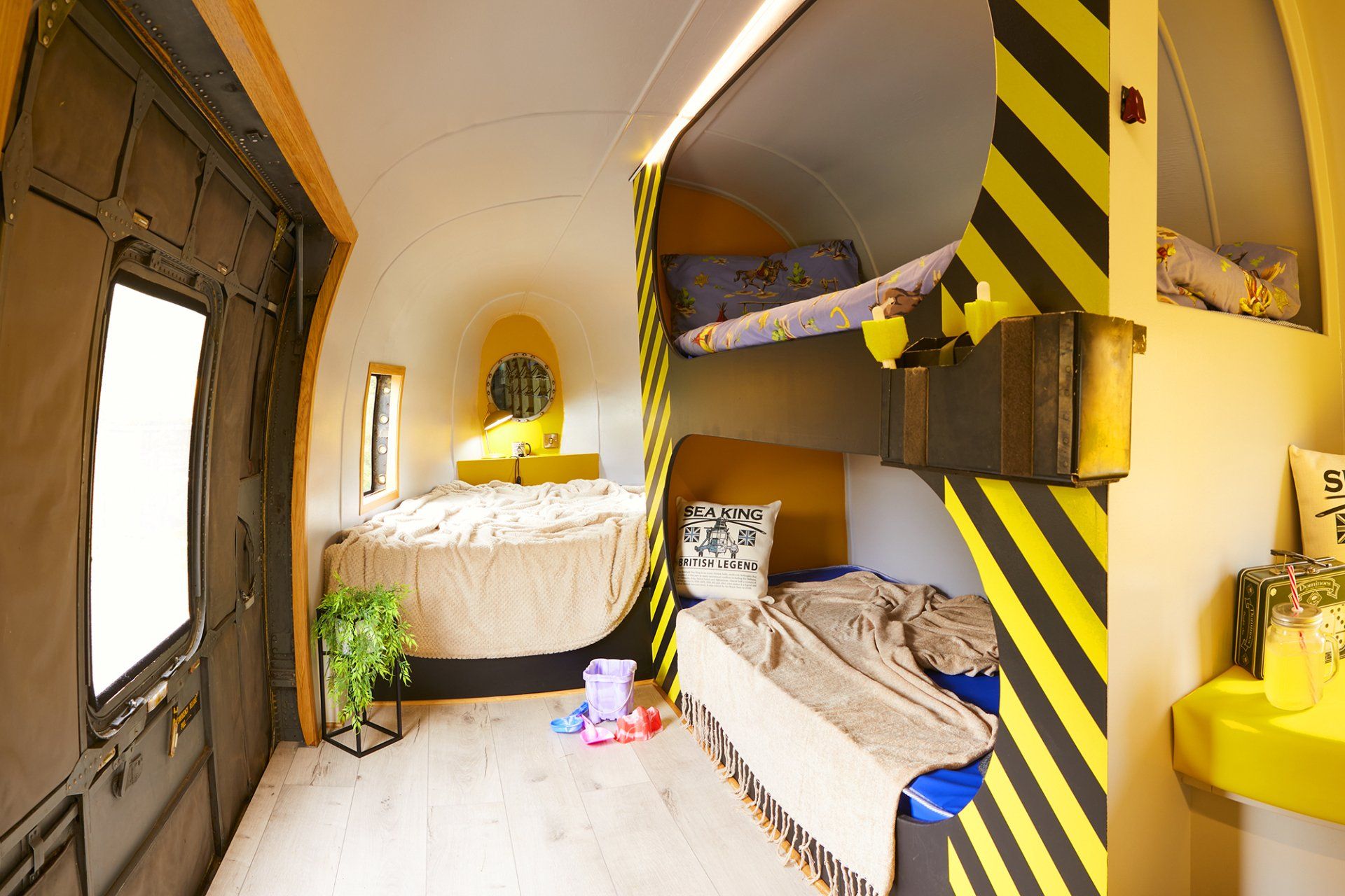 Stay in one of 3 Sea King Helicopters for a thrilling holiday experience.